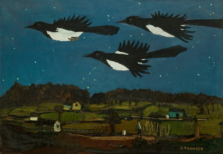 Prima promotrice di questa collezione é stata la figura di Francesco Tabusso (1930-2012), Artista di caratura internazionale particolarmente legato al territorio di Rubiana fin dalla prima infanzia. La Pinacoteca dista solo 500 metri dalla villa di famiglia, edificata nel 1906 e acquistata dall’avo Alfredo nel 1926, é stata da sempre il suo punto di riferimento privilegiato per la villeggiatura estiva: qui hanno visto la luce molti suoi lavori, realizzati nel giardino della residenza o nella mansarda adibita a studio.